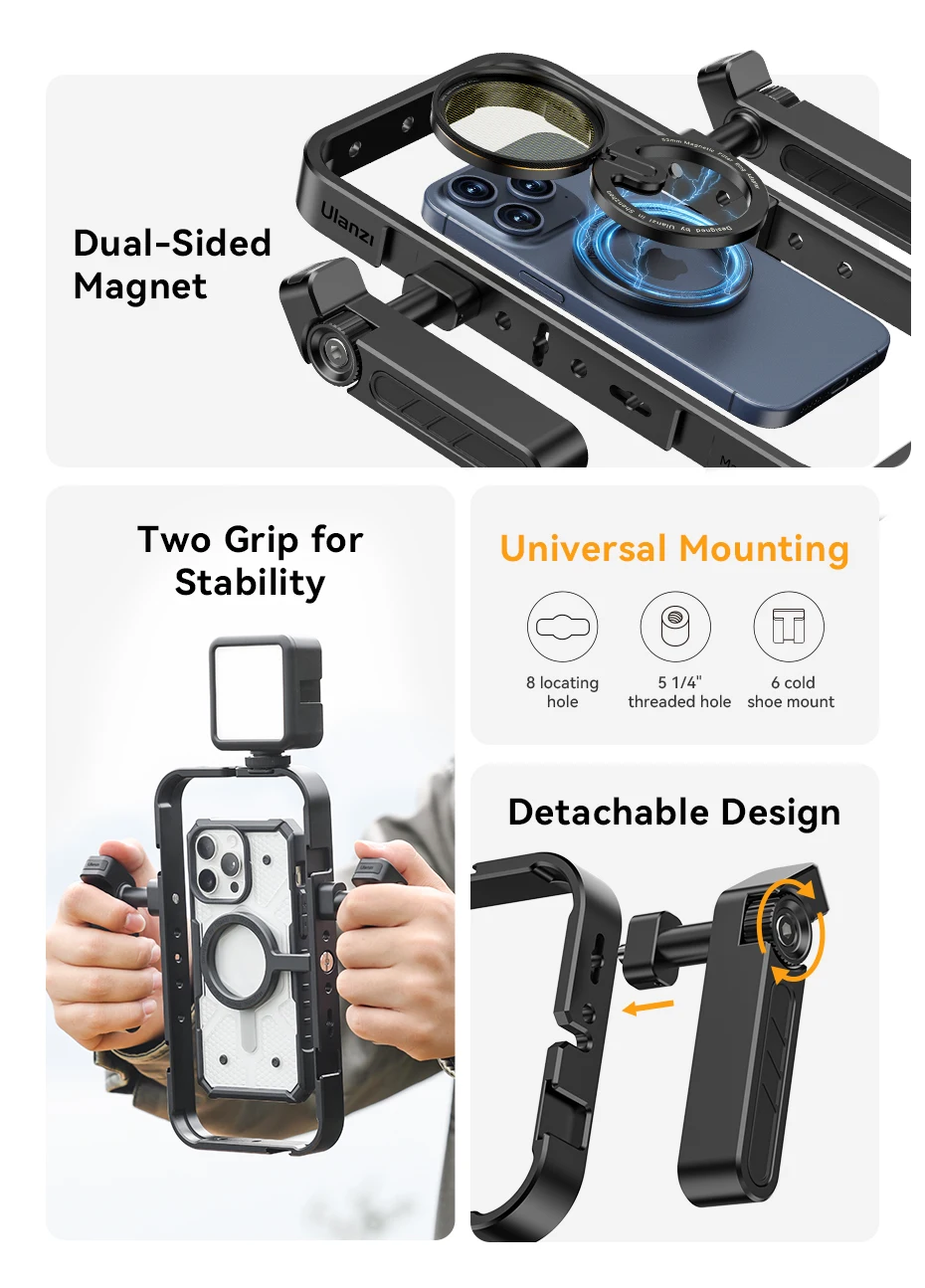 Gaiola Magnética para Smartphone Ulanzi MG-001 com MagSafe para iPhone Séries 16, 15, 14, 13, 12 e Acessórios de Fotografia para Telefones Android
